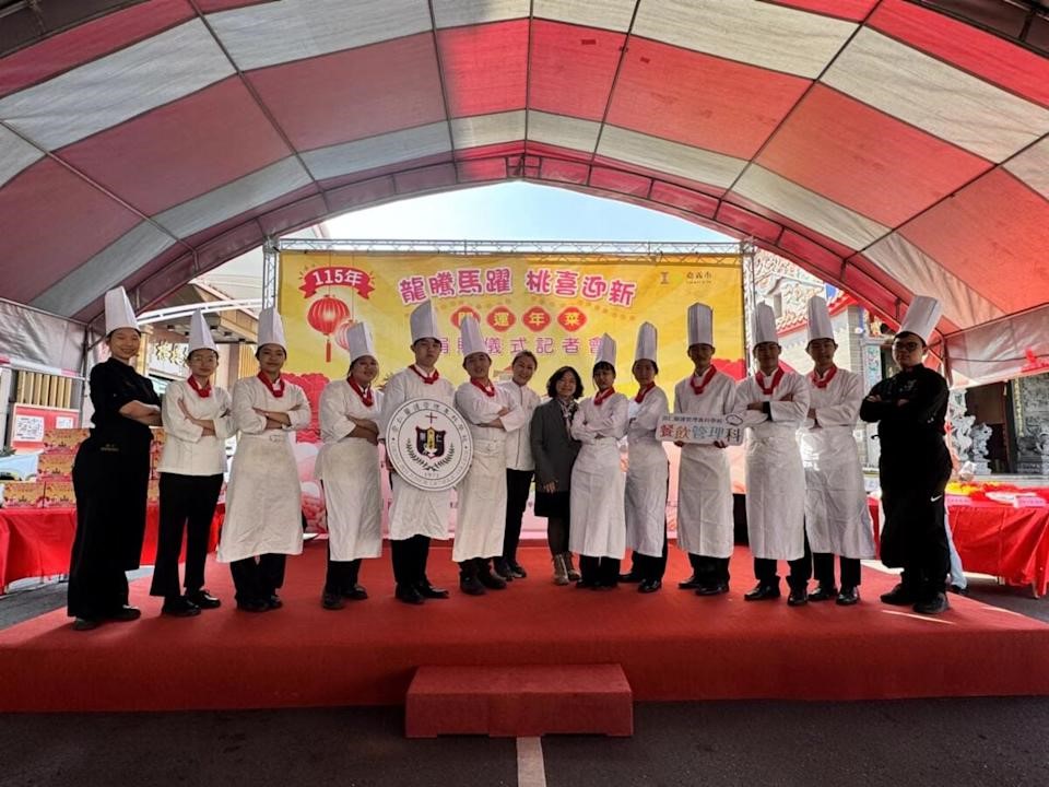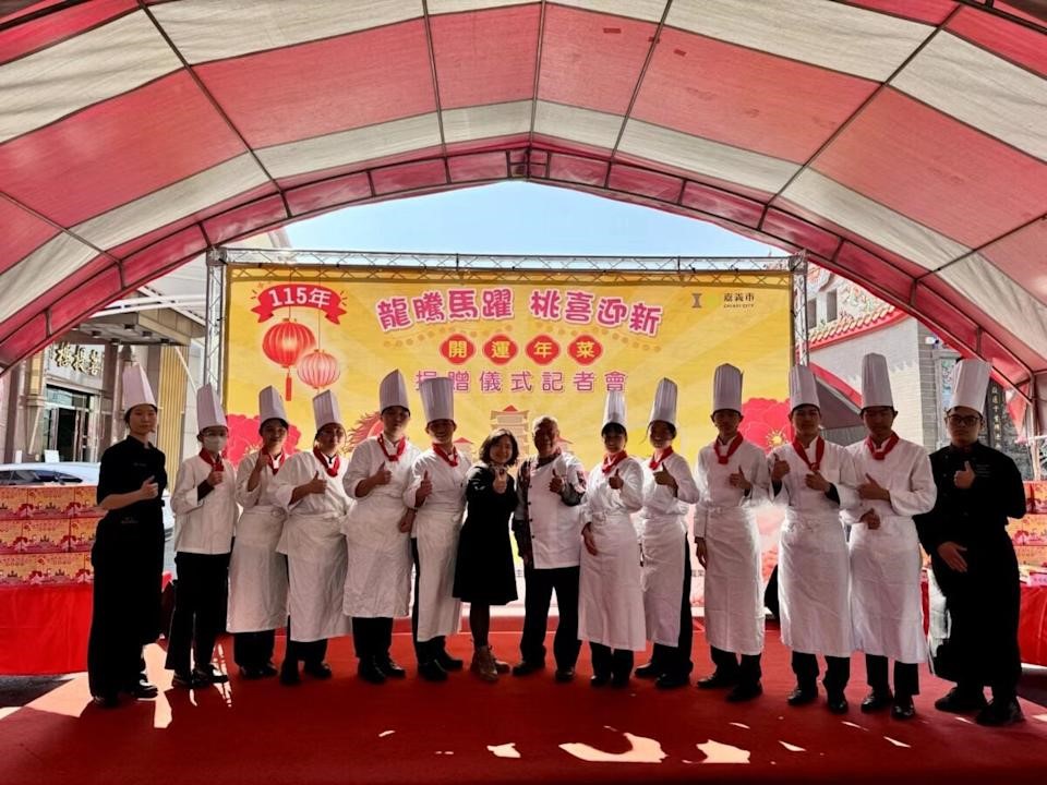 【記者 吳瑞興/嘉義縣 報導】迎接2026農曆春節,嘉義市政府12日攜手九華山地藏庵舉辦「龍騰馬躍桃喜迎新」開運年菜捐贈記者會,將祝福與溫暖送至弱勢家庭。現場最吸睛焦點,莫過於崇仁醫護管理專科學校餐飲管理科學生帶來的「黑白大廚」創意上菜秀,以五星級飯店規格完整展現專業服務禮儀,讓傳統冬令送暖活動增添儀式感與尊榮氛圍。嘉義市長黃敏惠盛讚學生表現專業自信,直言「教育決定人才,人才決定未來」,肯定崇仁長年深耕技職教育,培養能與產業接軌、同時擁有人文關懷的優秀青年,讓公益活動更具溫度與質感。